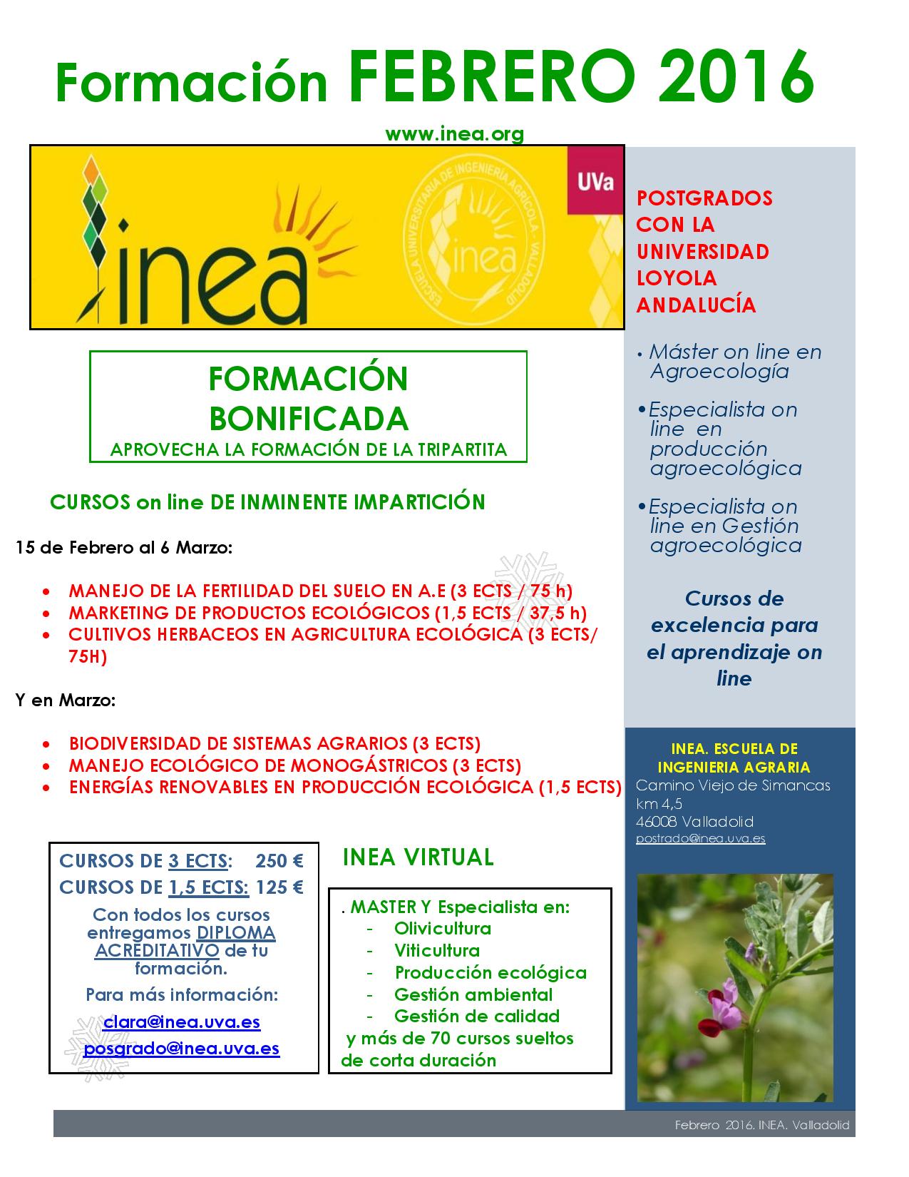 inea ofrece a lo largo del mes de Febrero una serie de cursos y actividades del máximo interés sobre todo en foramción on line y en agroecología.