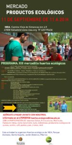 Ese día, martes 11 de septiembre, después de acabar las fiestas de Valladolid, celebraremos el mercadillo solidario como cada año. Sólo que esta vez viene acompañado de muchas más actividades y además coincide con la celebración en Inea de una jornada sobre productos ecológicos. Un día para disfrutarlo por completo en INEA. Os acompañamos el cartel de anuncio previo, pues en unas semanas saldrá el Programa completo de lo que celebraremos ese día.